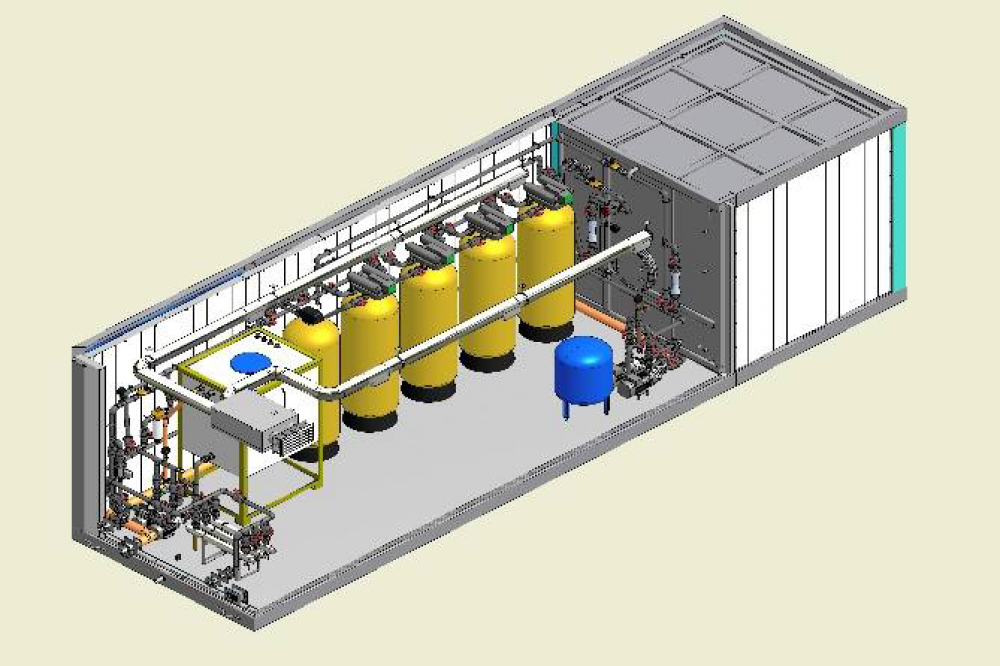 - Установка укомплектована двумя сборными нержавеющими резервуарами для чистой воды с системой утепления и обогрева, датчиками КИПиА;